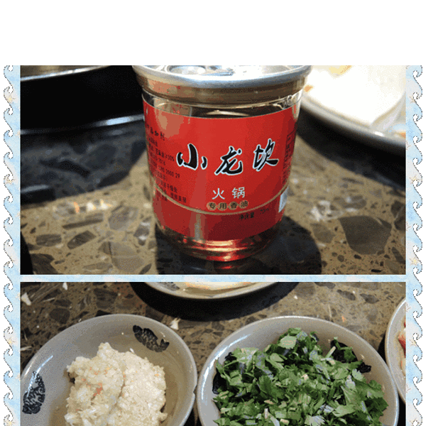菜单可以说是十分的贴心,上面注明了所有食材的涮煮时间。食材都很实惠,于是我们决定大快朵颐。香油配蒜蓉,是最最最经典的火锅配料了。火锅涮煮的食材放进香油中过一遍,既可以降温,又可以使食材增加香油和蒜蓉的香味,实在是太太太好吃了!!虽然很想有骨气的不点鸳鸯,但,最后还是没有胆量...怂