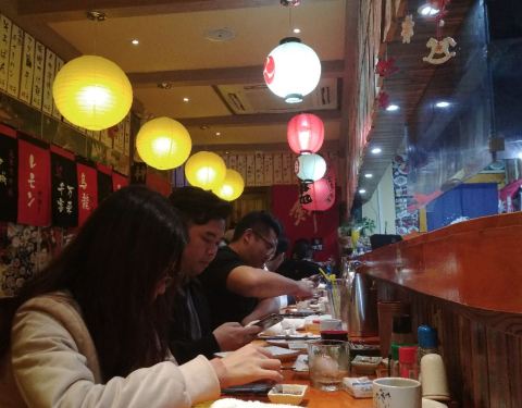 日式烧烤店,虽然说价格不便宜,但是烧烤味道真的很正,喝点小酒感觉更佳。明太子鸡翅、肥牛干笋卷、烤肠、大葱夹鸡肉、烤鳗鱼、各类刺身,每上一份,瞬间消灭。其中最让我惊喜的是烤香菇,味道原来这么奇妙!据说这里的日本生啤很好喝,来的晚上早早卖光了,有点小遗憾!