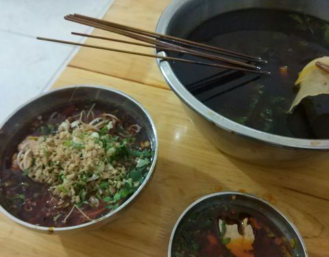 成都串串行第四餐 晚上在大众搜的第四家串串,也在小巷里店铺不大本店写着原汁原味没有添加剂,服务很热情,串串比较清淡的但是冒脑花和油碟确实味道很好,跟老板两口子聊了一会觉得人特好,做了十几年是串串,从推车做到有了自己的小店,人生就是这样在不知不觉中十几年的时间一晃而过,跑题了言归正传冒系列和串的品种有点少,其它都很好,如果你想吃一口原滋原味的没有添加剂的冷锅串串那么亲你可以来尝试一下。