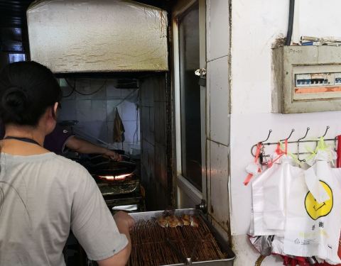 中午送机回来的早,就按照导航来找这家网红锅贴铺。其实也很好找,就是原来的方中圆的位置,现在有点衰败,周边餐饮有点人气的也就这家了,所以比较好找。店铺很小没有几张桌子,而且里面空气流通非常差,厨房又是敞开式的,所以时间长了能熏一身味道。去的时候已经人满,而且点餐后基本要等半个小时以上。墨鱼的没有了,黄花鱼和三鲜的都尝了尝,鱼肉还是比较明显的,来碗稀饭和小咸菜解腻。管理有点乱,经常有上错记漏的,所以小伙伴去体验一下就可以了,别太执着。