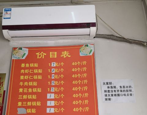 中午送机回来的早,就按照导航来找这家网红锅贴铺。其实也很好找,就是原来的方中圆的位置,现在有点衰败,周边餐饮有点人气的也就这家了,所以比较好找。店铺很小没有几张桌子,而且里面空气流通非常差,厨房又...中午送机回来的早,就按照导航来找这家网红锅贴铺。其实也很好找,就是原来的方中圆的位置,现在有点衰败,周边餐饮有点人气的也就这家了,所以比较好找。店铺很小没有几张桌子,而且里面空气流通非常差,厨房又是敞开式的,所以时间长了能熏一身味道。去的时候已经人满,而且点餐后基本要等半个小时以上。墨鱼的没有了,黄花鱼和三鲜的都尝了尝,鱼肉还是比较明显的,来碗稀饭和小咸菜解腻。管理有点乱,经常有上错记漏的,所以小伙伴去体验一下就可以了,别太执着。