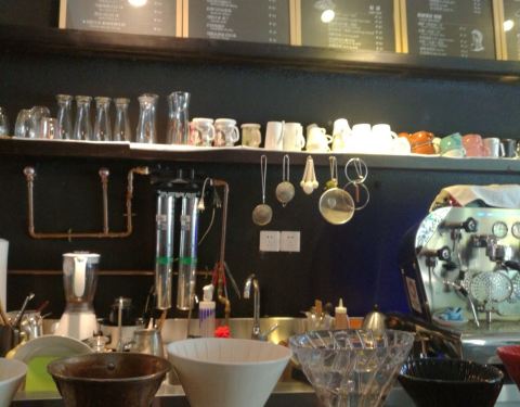 在回酒店-西湖茶墅的路上,正遗憾着找不到喝咖啡的地方,抬头看见一位小哥隐约拿着好多咖啡杯匆匆走过!顺着她走过的方向,发现了这家小小的咖啡店!品种不少,果汁,烘培点心和鸡尾酒都有!营业从早上10:00到晚上11...
