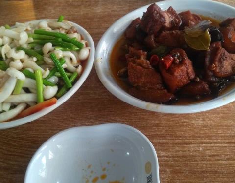 讲真的,味道不错比聚民好吃,不过刚过来就看见别人饭了吗有东西