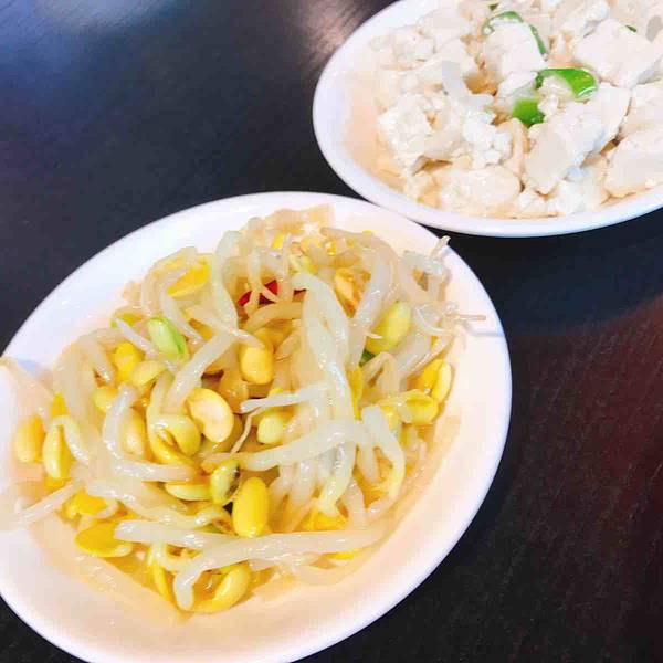 手撕鸡里面加入了竹笋,满满的一股竹笋味,一定程度上减弱了手撕鸡本身的味道,初入口感觉还行,吃多了会比较腻。搭配一道绿色蔬菜,清爽解腻,营养健康。最爱的中餐莫过于炒凉粉,只要在餐厅遇到就一定会来一道。