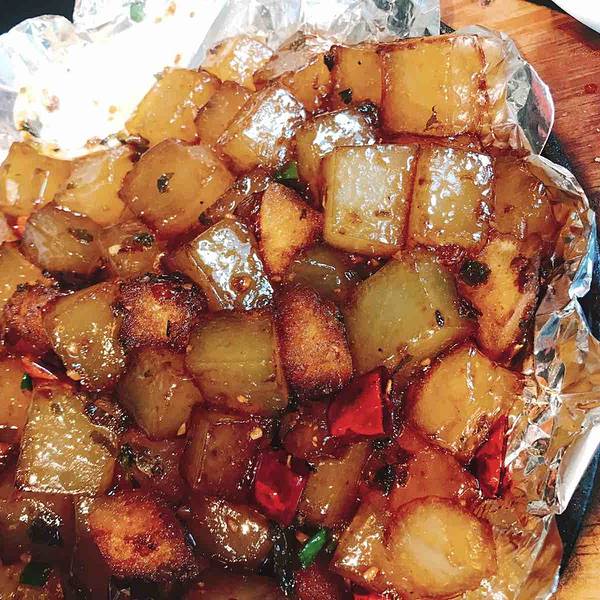 来北郊这边办事,中午便想着约个中餐馆,来几道下饭的辣菜。这家餐厅位于凤城二路,出来便看到了这家餐厅,午饭点,里面也坐着满满的用餐的人,想必味道还是不错的。便没有犹豫,直接过来。 餐厅的面积挺大的,过来了的时候刚好还剩两个空座,便直接入座点餐。店内的服务员比较少,没有什么服务。厨房的旁边有免费小菜和粥品供应,两道粥,两道小菜和一道锅巴,等餐的时候,先随便吃吃,让嘴巴不要闲。 虽然用餐的人比较多,上餐的速度还是蛮给力的。来了份招牌的老碗鱼,分量很大,价格不贵,性价比还不错,主要以麻为主,可以让嘴唇跳舞的麻辣够味。 手撕鸡里面加入了竹笋,满满的一股竹笋味,一定程度上减弱了手撕鸡本身的味道,初入口感觉还行,吃多了会比较腻。搭配一道绿色蔬菜,清爽解腻,营养健康。最爱的中餐莫过于炒凉粉,只要在餐厅遇到就一定会来一道。