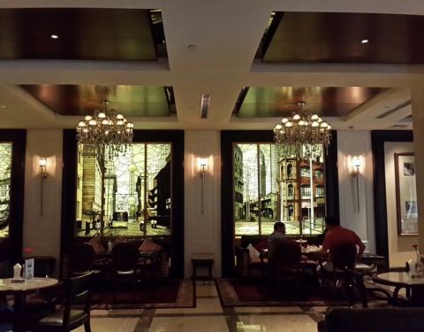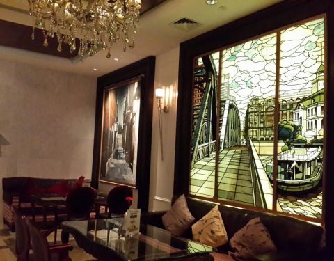 外滩浦华大酒店大堂吧是老上海的装修风格,走古典精致的路线,无论是入门而来的宽大楼梯,还是穹顶的彩色玻璃,恍若回到上世纪三十年代的十里洋场。点心做得不错,咖啡味道也相当正宗。