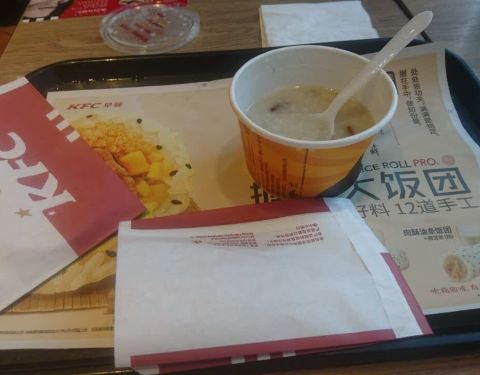 今天天气好,又来肯德基吃早饭,享受银联福利,萌萌哒。香菇鸡肉粥,油条,培根帕尼尼,豆浆,口味棒棒哒??。环境优美,灯光明亮,宽敞舒服,卫生卫生,洗手间还有热水洗手,寒冷的冬季,温暖的体验。服务员年轻...
