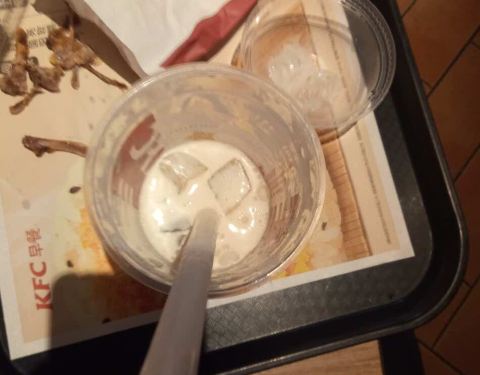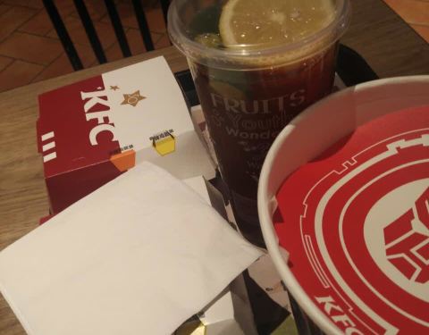 和朋友分享一杯半柠半桔鲜果茶~喜欢肯德基~