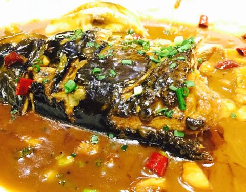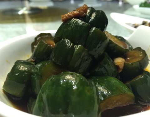 点菜方式是宁波酒店常见的玻璃缸模式,所见即所得,另外特色小食和拼盘整齐排列,既然是乡土味道,在特色上应该是蛮下功夫的,等下品尝见真章了。 上菜速度还可以,先是冷盘,中规中矩,热菜第一道来了,毛芋艿油渣羹,这道做的不错,口感很细致,而且里面的猪油渣跟其他家不一样,别人家时间长了发软,他们家咬进去居然是脆脆的,据说是用五花肉经过秘制手法,好吧,我喝了三大碗。 番茄牛腩,牛腩很嫩,番茄很酸,个人觉得很赞,料也很足,大大一份,十个人都可以满满一碗,牛腩块头也大,吃起来蛮爽的。 鱼头煲,鱼头蛮大只哦,烧制手法也很地道,浓郁的汤汁浸泡,旁边配了嫩如白玉的豆腐。 瓦片鸡,炖的还可以,筷子一撕就轻松到手,鸡肉也嫩,没啥土腥味,推荐。 碳烤鱿鱼,老大一只,肉质细腻,很有嚼劲,尤其是色泽特别吸引人。 另外小望潮炒豆芽、梅干菜猪油饭、肉汁闷南瓜等几道也很不错,这家总体来说性价比很高,请客还是很不错的。