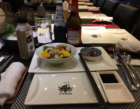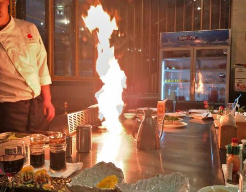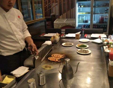 大渔铁板烧餐厅的装修风格很日式,颇有异域风情。这里以铁板烧为主打,水果和沙拉味道也很独特。其中的三文鱼、泰国黑虎虾,肉质鲜嫩,回味无穷。