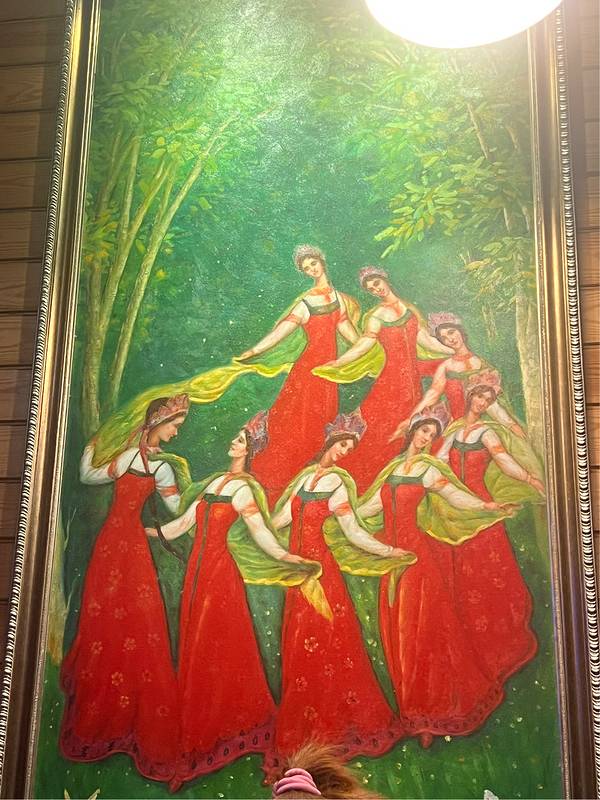进店的时候,看见两位有异国风情的美眉走在前面,还以为也是前来就餐的吃货,没想到她们都是服务生。其中一位长发披肩,可是,胖,又见店内画的俄罗斯美女皆苗条,慨叹:时间是把杀猪刀,其中俄罗斯美女的保质期...