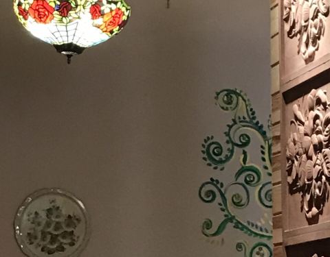 进店的时候,看见两位有异国风情的美眉走在前面,还以为也是前来就餐的吃货,没想到她们都是服务生。其中一位长发披肩,可是,胖,又见店内画的俄罗斯美女皆苗条,慨叹:时间是把杀猪刀,其中俄罗斯美女的保质期最短。前一天我想找的餐馆也是美食林:喜茶,虽然不是周末仍然长长的人流。可是,今天周末,同样美食林的这家餐厅,从我进入到离开,只有另外一桌食客。