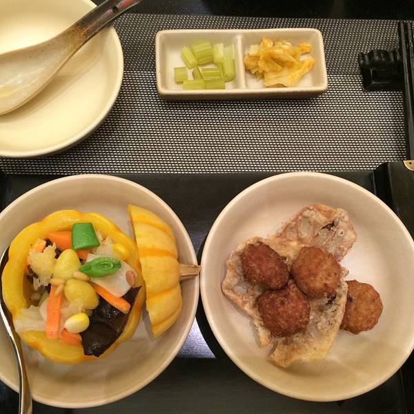 套餐共有11道菜,每一套都制作精美且有讲解,整家餐厅的风格就是以秦代的打扮礼仪来的,甚至还有秦代的服饰可以体验,爸爸说很值!