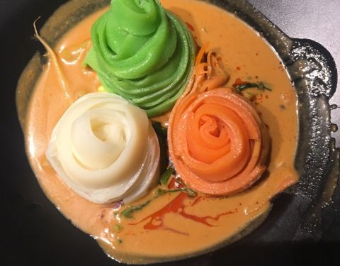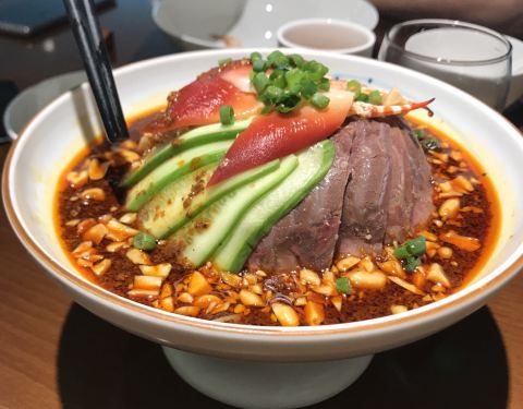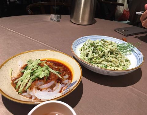 高圆圆光顾过的西北菜餐馆,装修以黑、白为主基调,复古与现代的优质结合,主打菜大秦烤羊排用的是肉质鲜嫩的羊羔肉,酥软入味连骨头能啃,三色凉皮也是必点,菠菜、胡萝卜调色,麻酱不浓不腻,面皮厚实有嚼劲。