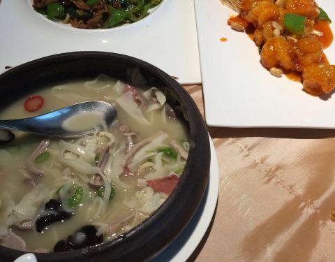 牛气冲天,番茄味的,酸酸甜甜,配着脆脆的锅巴,太赞了。秦王鱼羊鲜,鱼肉遇到羊肉,鲜上加鲜,真的很好吃。三色凉皮,要的麻酱口的,有点酸,拌着开锅豆腐的酱料更好吃。肉夹馍,很棒,好吃不够。
