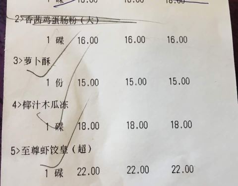 难吃的也是没谁了…吃过最不正宗的茶点…肠粉皮硬得挑战咀嚼肌…木瓜奶冻奶味非常淡,那颜色也是灰白色的…感觉不是鲜奶做的…虾饺就两个虾仁在里面…咬开皮也是略硬…感觉是放了很久的样子…萝卜酥皮略油…服务...