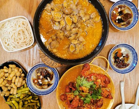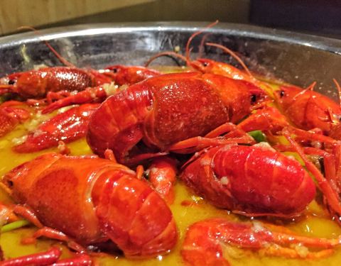 餐厅以特色蒜香小龙虾、清水小龙虾、十三香小龙虾为主打菜品,每到夏天生意就相当火爆。据说他们家的小龙虾都从江苏空运而来,小龙虾在荷花池清水养殖,腮白肉细富有弹性,营养丰富,保证新鲜。如果觉得小龙虾吃不饱,还可以点上一份龙虾面,小龙虾的汤汁浇在面条上,味道超级棒。