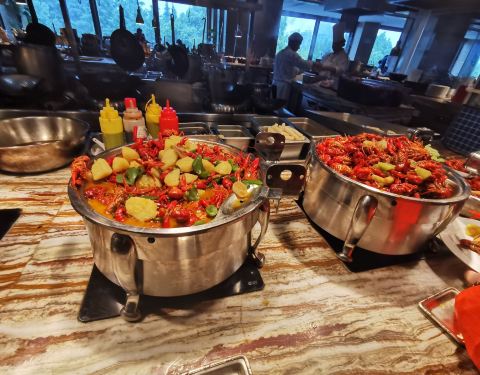 星级酒店内的自助餐厅,丰富珍馐精美诱人。