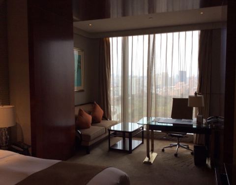 靠窗有沙发和书桌,自动窗帘,窗外黄兴公园的景色特别宜人。 房间很温馨宽敞,装修不错