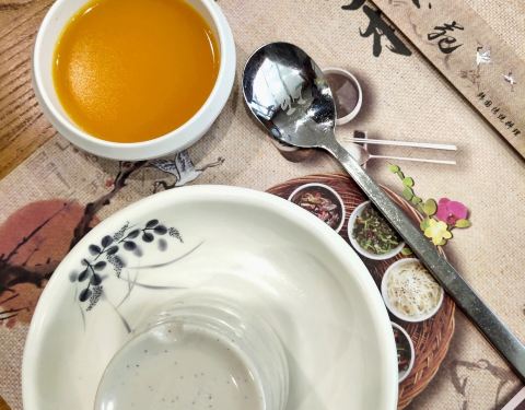 『秘苑 』汤泡饭套餐很超值[胜利] ⭐ 上次去楼上吃国王肋排的时候,留意到这家店人气很旺,像好吃的样子,今天的午饭就这里解决一下[呲牙] ⭐ 落座就先送上南瓜粥,各种汤泡饭 是店里特色,单人点一份脊骨汤泡...