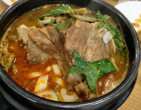 脊骨有点辣味,肉质略柴,牛肉石锅量大感人,味道也不错,米饭没有结巴美中不足,总体来说很不错
