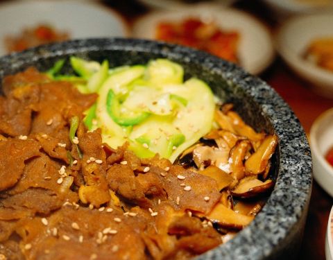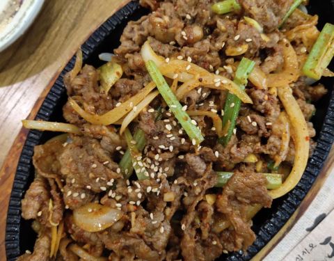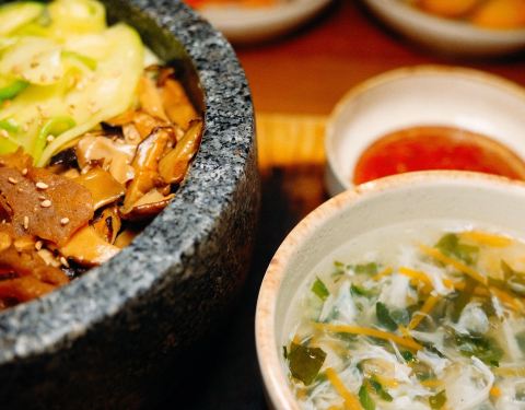 来中央大道看个电影,搜了下附近, 顺便吃个饭。这家店应该是新开业的,估计试营业阶段,门头还挂着红布,中午客流还不错,点了石锅牛肉拌饭,套餐搭配有六种韩式小菜,味道还不错,比较喜欢吃那个辣萝卜。牛肉饭很实惠,量太大了,配合辣酱吃味道挺好,实在是太烫了,吃了很久,很满足。