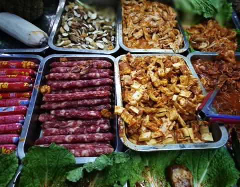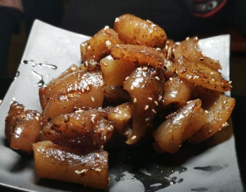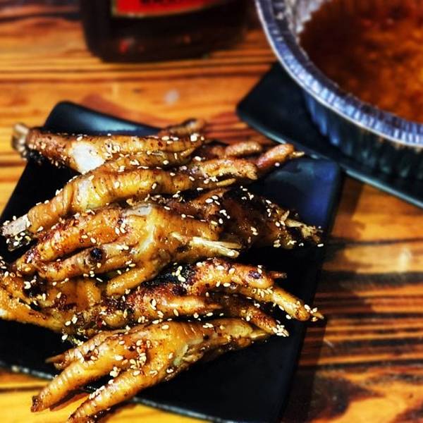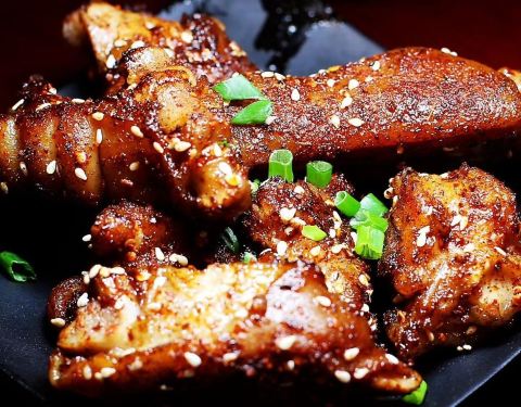 - 先卤后烤的鸡脚和猪蹄,大火上烤香,撒上芝麻、辣椒,入口即化、香糯入味,我一个人都可以吃一盘