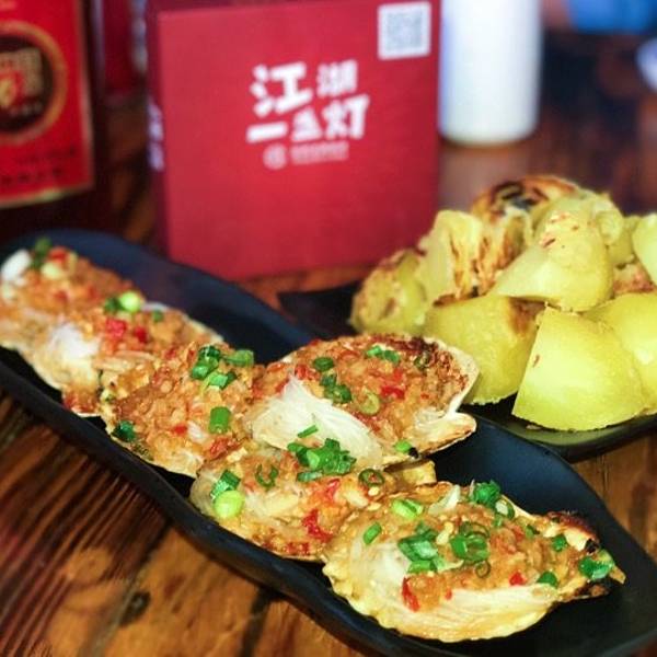 【越过大半个昆明城,只为了你而来】我又来到了昆明最牛逼拥有多年历史的江湖一盏灯,各种我最爱的招牌烤鸡脚、烤猪蹄、烤牛肉、辣螃蟹就这样摆在我的眼前~ 鸡脚、猪蹄先卤后烤又糯又香,生炒辣螃蟹鲜嫩入味,生蚝、扇贝新鲜大只! 卤烤鸡脚、猪蹄、牛肉串、饵块,在江湖一盏灯永远必点的几大件!还有其他各种各样的美味,爱死江湖一盏灯了!
