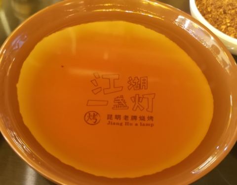 江湖一盏灯在昆明宵夜算是傲立江湖,可以说味道特别好,对于一个在四川习惯了美味的地方,能达到这样高的评价是比较难的,牛肉串、鸡爪子、猪蹄是极力推荐,耳块的秘制豆瓣酱料非常好,蒜香蘑菇、涮牛肉每一个都无可挑剔,这是一家新店,环境很江湖,气氛很江湖,是昆明夜宵最值得推荐的地方。