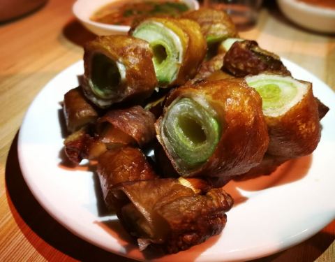 大过年的朋友想吃烧烤,我头脑第一个浮现的自然是“江湖一盏灯”,怕过年不开门所以打电话问了,好消息是初一到初六都开门! 即使是大过年的,江湖一盏灯的生意依旧好到飞起,店的里里外外都坐满了人,服务员都忙的应接不暇! 每次来这里吃,“三大招牌”猪蹄、牛肉串、鸡脚我是一定要点的。先卤后烤的鸡脚和猪蹄,大火上烤香,撒上芝麻、辣椒,入口即化、香糯入味,我一个人都可以吃一盘。 烤牛肉串用的是全净瘦的牛肉,烤出来的牛肉鲜甜多汁、香嫩入味,一个人来个十串五串的不是问题。 其他的东西像烤饵块、烤脑花、烤葱肠、烤鸡蛋也都十分推荐哦!