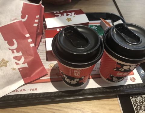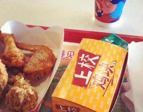 宜昌饭店的菜大多数都是偏辣的,吃不习惯。在市中心万达广场一楼,看到肯德基,太开心了。恰好肯德基app卡包里有好几张买一送一券,顺便用掉。两对奥尔良烤翅,两份上校鸡块,两杯拿铁,两个人的下午茶很丰盛,自...