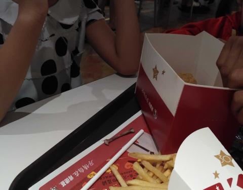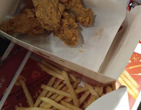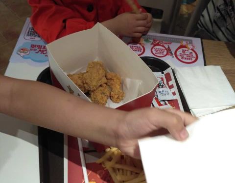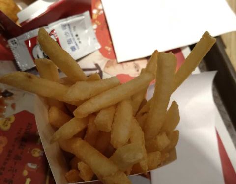 早上没有薯条和鸡块,但小孩要吃,帮忙现做的,给肯德基的小伙伴们点赞!