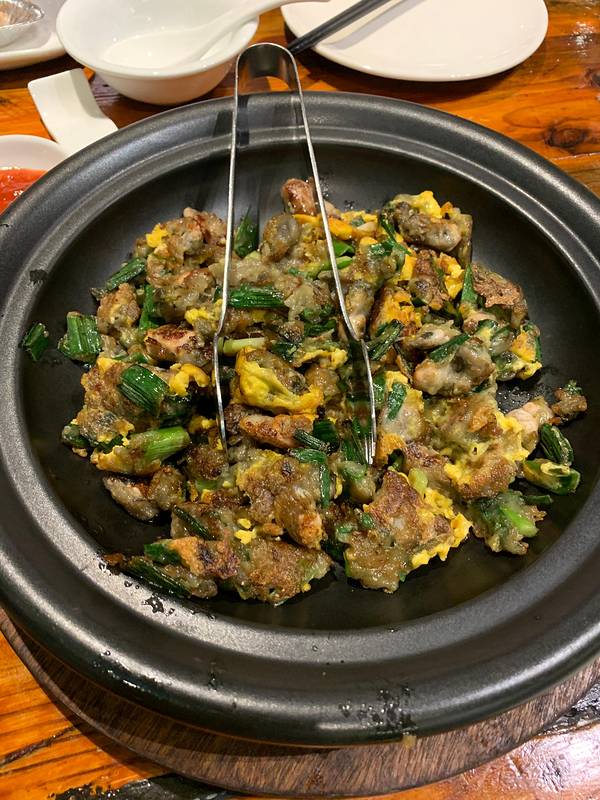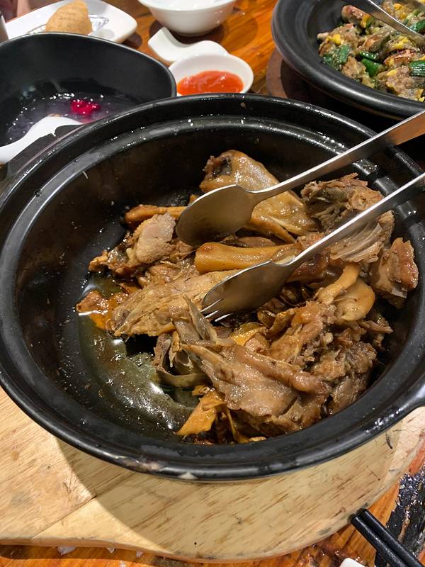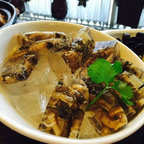 开始上菜,第二次涨姿势,招牌金猪手,外焦里嫩,飘香四溢,只不过猪手不是猪蹄而是肘子,又一次感受到了南北的巨大差异。卤水豆腐农家的朴实扑面而来,个人表示,豆腐好吃,蘸酱更好吃。说道酱,就想起来陈乔恩的成名作《命中注定我爱你》里的姜母岛、姜军包,虽然都是虚构的,但是这里的姜母鸭是实打实的,鸭子的腥味完全没有,但是平时做菜的跑龙套,在这里成了男二,个人表示吃不惯。第一次尝到闽南风味的皮皮虾,和之前在山东那里的口感完全不一样,但都一样好吃。安海土笋冻,不知道里面是虫子还是海鲜什么的,熬成冻,QQ滑滑的,价格有点吃不消,6块钱一小块。最喜欢小锅萝卜焖饭啦!它家的招牌,这锅米,很厉害,怎么系出名门我也记不得了,但是口感确实不一样;不仅是米,让服务员一说,胡萝卜、猪肉,哪个都是大有来头,总而言之一句话,人家卖这么贵是有道理的。实际品尝,猪肉的丰腴、萝卜的清甜、米粒的饱满、葱油的清香,确实口感比较分明。另外还有黏黏的感觉,不知道是不是放了香芋。