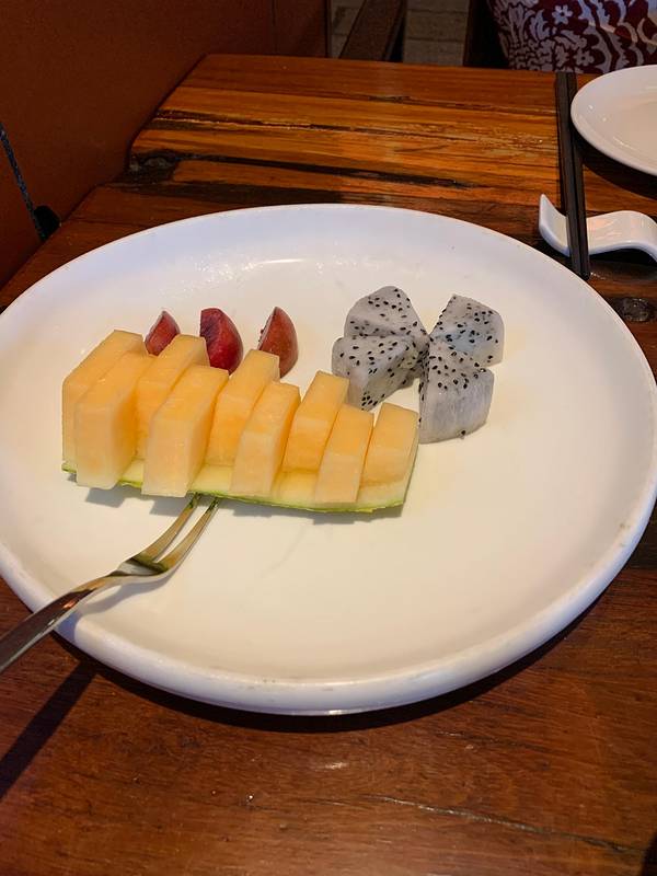 店里的服务特别好,餐前水果、小食非常棒,而且饮料竟然上的是米汤,第一次遇到。候餐时,问旁边的服务员能不能讲一个笑话或者当地的见闻,服务员答道:曾厝垵有一家门脸,老板因总被游客问“对面是不是就是台湾啊”,干脆以“对面是漳州,不要再问了”为招牌。瞬间我尴尬癌犯了,因为我也以为“对面还需要问,肯定是台湾嘛”。好吧,虽然饭还没吃到,肉还没长,但是知识涨了,这饭钱就掏的不算亏。