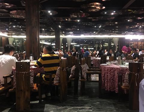 饭店位于环岛南路上,在曾厝垵公交站下车,沿海走100米左右。店面非常大,坐拥100米的海岸线,5000多平方的营业场地,颇具闽南特色的装修,红砖、青石的搭配,反正非常显眼,不会错过。当然消费也不算便宜,人均100。我的运气非常好,去的时候人还不多,直接有座,后来的人就没有那么幸运了。