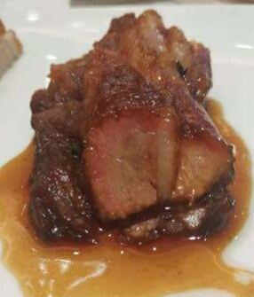 - 四宝炒牛奶,口感及其丰富,只是吃多了有点腻。经典文昌鸡,鸡肉吸收了火腿的咸香,以白灼芥兰为装饰摆盘