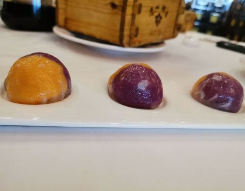 去广州出差,第一次到广州,就知道陶陶居,结果广州土著带我去吃广州酒家,说是当地老字号。一般来说都是吃早茶的,但是我们只有晚上有时间,所以就在晚餐时间吃了早茶的东西,点了虾饺皇、流沙包、榴莲酥、杨枝甘露、四宝炒牛奶和菜心。 味道都不错,最喜欢流沙包,不像在上海吃过的几次流沙包,真的是流出来的,内陷特别浓郁的感觉,上海的几次流沙包尝试,内陷都比较少。四宝炒牛奶的摆盘很漂亮,白瓷的盘上有红梅一枝,服务员特别指出是厨师亲手画的。榴莲酥其实普通,一个下去之后就很饱了。这家店最好的一点是,一般来说每份电心是6个的,但是我们只有3个人,所以可以点3个。也是我们正好是3个人,所以凑巧了。 服务员们都很平易近人,感觉挺舒服的,店里的装修确实比较90年代的味道,所在的商场也比较老了。 点了一壶茶,茶水会一直添,还多给了2个茶包。