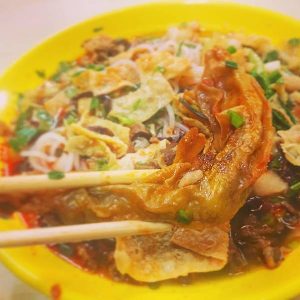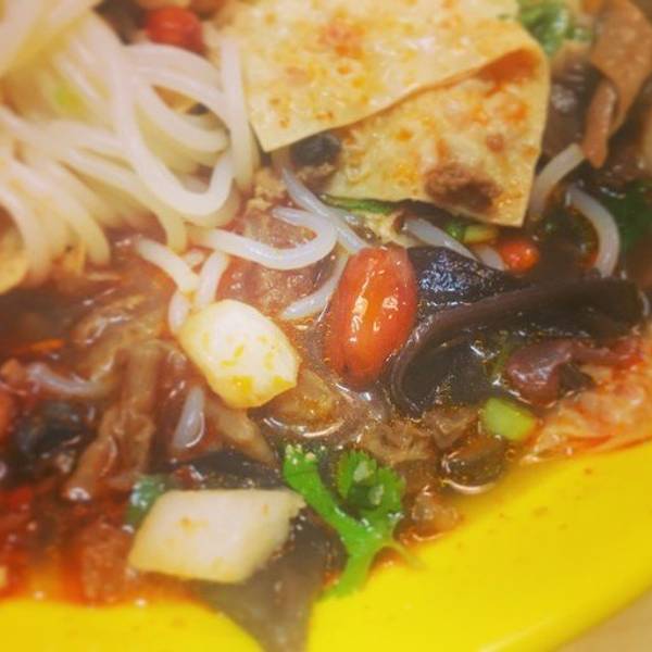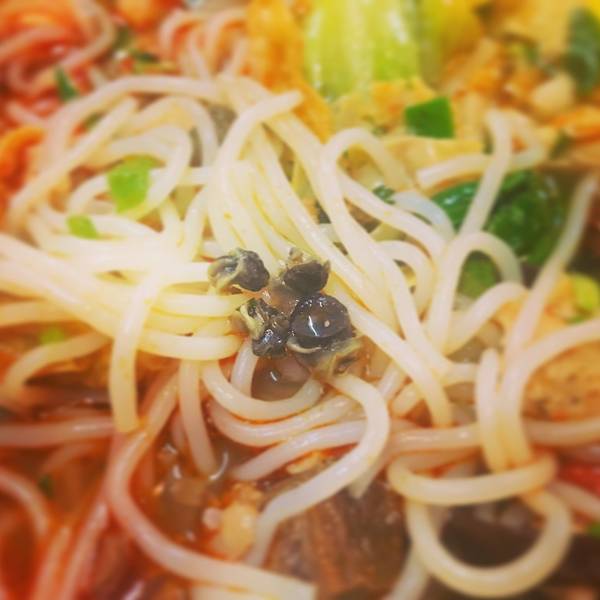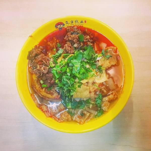 就在这个时候突然一个大婶咣当一下坐到了我的对面,拿了一大碗米粉和一瓶豆奶。。吓了我一跳,因为我是一个人特意选了一个很小很小的一人桌自己吃,没想到这样也能拼桌...好担心她的米粉掉下去