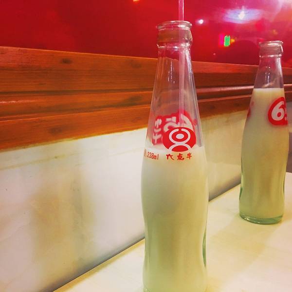 这时候我又去放了三大勺葱花和三大勺香菜,端回来的时候惊呆了大婶这个是豆奶,味道不错,当然,远的那瓶是大婶的