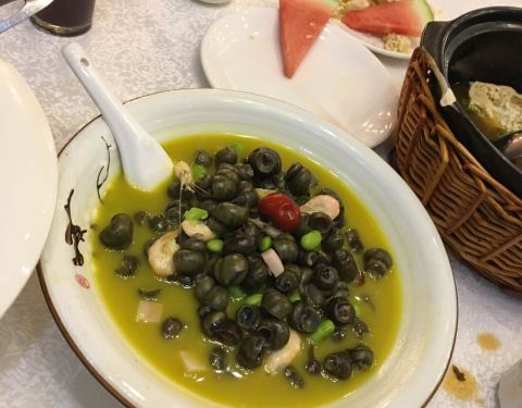 - 汤丝螺也有很多口味,酱汁,鸡汤等,天目湖鱼头超级大,鱼丸鲜嫩
