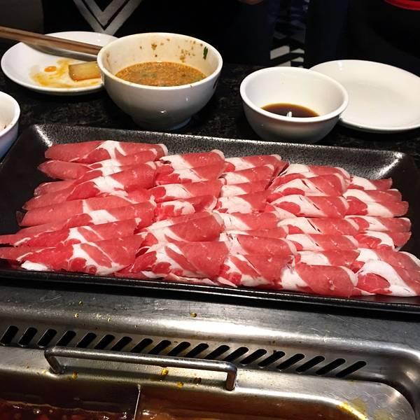 - 这里的肥牛就是我的最爱了,肉质好,而且新鲜。在酱料的上面,还有无限任食的新鲜水果实用