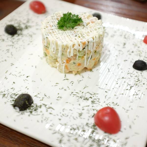 挤一点柠檬汁后味道更好另一道开胃菜是奥利维耶沙拉