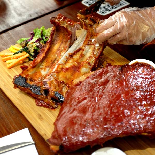 在北京应该只有在这能吃到这个口味的烤猪肋排开胃菜是金枪鱼沙拉