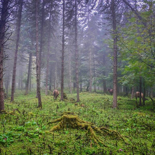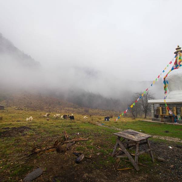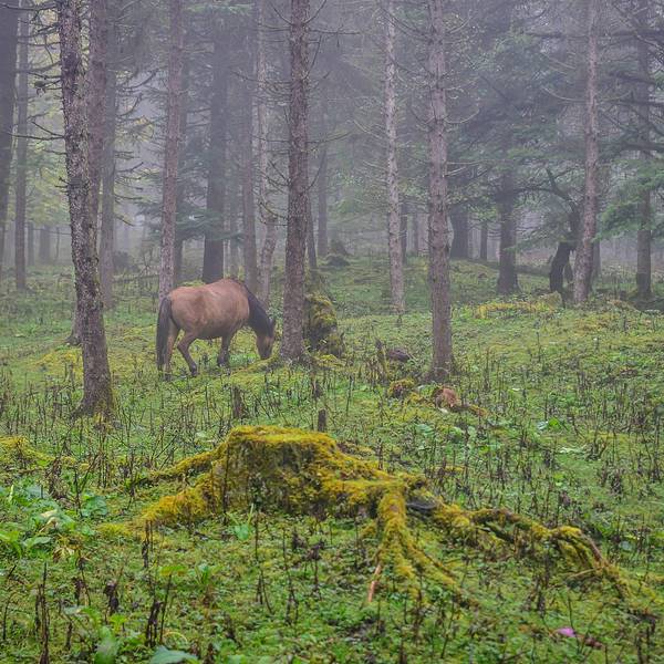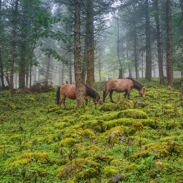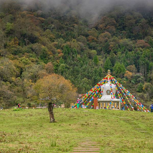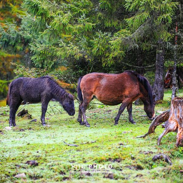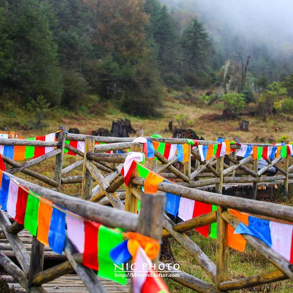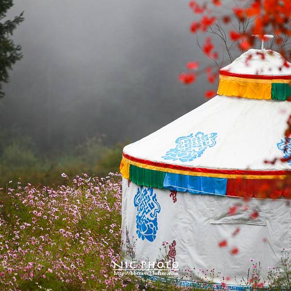 大车:20 小车:10这个季节也正是神木垒最美丽的季节。满山的红叶也已经红的通透了花丛中,还散落了几个蒙古包。神木垒既有参天古木,也有高原草甸,原始森林的风貌保存得很好,新修建的旅游山道和木桥,让人轻松穿行在空气清新的天然氧吧,藏族牧民的牛羊,骡马甚至放养的猪儿在山坡草甸惬意地啃食牧草,让人觉得仿佛到了世外桃源。景区内,还有藏民卖这里的牦牛手撕牛肉。我尝了一下,味道还蛮不错的。山林里,刚刚下过雨。小蘑菇也忍不住冒了出来。山顶,浓密的雾霭导致视线不佳,只见到许多由于不明原因而成片折断的大树,绿油油的草地上留下的一个个桌面大的树桩,如同向着天空张开的嘴,仿佛天然的木雕艺术。山顶的平台,是神木垒的核心景区了。