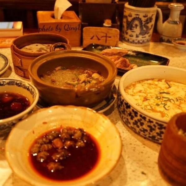 薄饼牛肉松好像京酱酸豆角。香椿炒鸭蛋就是鸭蛋本人。下次还...口味很好,性价比也比较高~一桶鲜挺好的,就是胡椒粉有点太多了。南京大排档好吃一如既往 试了几个没吃过的八重鱼头/臭豆腐/藕饼有点一般不如经典菜。