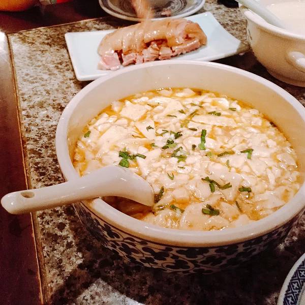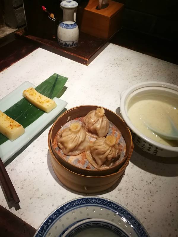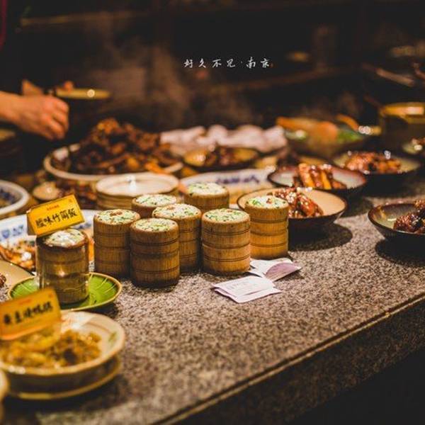 南京大排档需要等位,但在等位的同时可以在手机点单,等坐下扫一下桌上的码就下单成功了~南京大排档的陈设挺有特色的,古色古香中有一种热火朝天的劲儿(但也可能是我情人眼里出“西施”哈哈哈哈)盐水鸭盐水鸭好吃!非常入味,咸香咸香的符合广东人口味,鸭肉酥软,鸭皮爽口,激情打call!!!美龄粥美龄粥是必须要吹爆的!吃完之后我了解到了它是豆浆粥,里面加了山药,甜甜的~我第一口下去感觉像是燕麦粥,总是打心底里觉得吃完之后整个人都美美哒,天惹我喜欢这个让我产生错觉的粥!天王烤鸭包这个包子!是我华东之旅对包子的入坑之作!我一口咬下去浓浓的汤汁就在我的口腔散发开,那香味让我想到了广东的腊味!我姐说感觉有点腻,我倒是还好,我吃了两个嘻嘻!虾黄豆腐这个豆腐对我们来说是个雷!!!是个雷!!!第一口吃下去就觉得味道奇怪而且似曾相识,后来姐姐说是调料包的味道,fine,我懂了还有一个糖芋苗(忘了拍它所以放个全家福)吃到糖芋苗之后,我们感叹:“这边的糖水就是好,不会太甜”。在这里插播一则打脸预告:仅仅是南京的糖水不太甜啊!!!