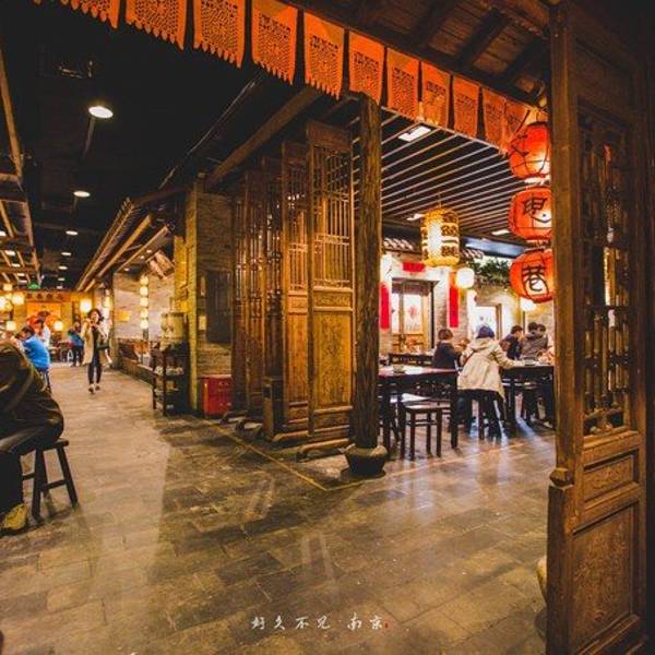 南京大牌档始创于1994年,是南京人展示独特菜系的古典饭店品牌,在秉承原新街口南京大排档之浓郁民俗风格基础之上,又有创新和升华,数百种民厨小食,田园时蔬,家常烹煮,口味地道。20余间各款江南小阁、随处可见的楹联灯幌、穿梭于桌台间的古装堂倌,充溢着中华传统民俗风情,气韵古雅,再现清末民初茶楼酒肆之旧貌。吃着鲜嫩的狮子头,咬一口汁多味美的烤鸭汤包,再来碗稠稠糯糯的糖芋苗,南京名点一站吃遍,置身这其中,恍如隔世。
