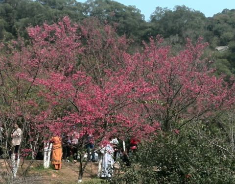 ...,沿着鹅卵石路,欣赏樱花和梅花竞相开放的景色,红的、白的、粉的花儿增添了春日的色彩,感觉美极了