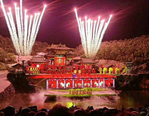 ...真水展现,分为六个序幕,演出时间为近一个半小时,故事内容一般,但演出方式让人着实震撼,不可错过观众坐在一座可以容纳两千多人的可360度旋转的船上,整场演出以华夏民族诞生发展为主线,运用现代高科技声、光、电、影的手法,白天的风景(景点)变成夜晚的场景(帷幕),真山真水展现,分为六个序幕,演出时间为近...观众坐在一座可以容纳两千多人的可360度旋转的船上,整场演出以华夏民族诞生发展为主线,运用现代高科技声、光、电、影的手法,白天的风景(景点)变成夜晚的场景(帷幕),真山真水展现,分为六个序幕,演出时间为近一个半小时,故事内容一般,但演出方式让人着实震撼,不可错过。建议某宝买票,优惠幅度大一些。 展开