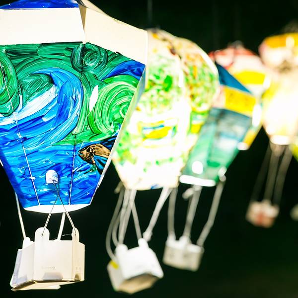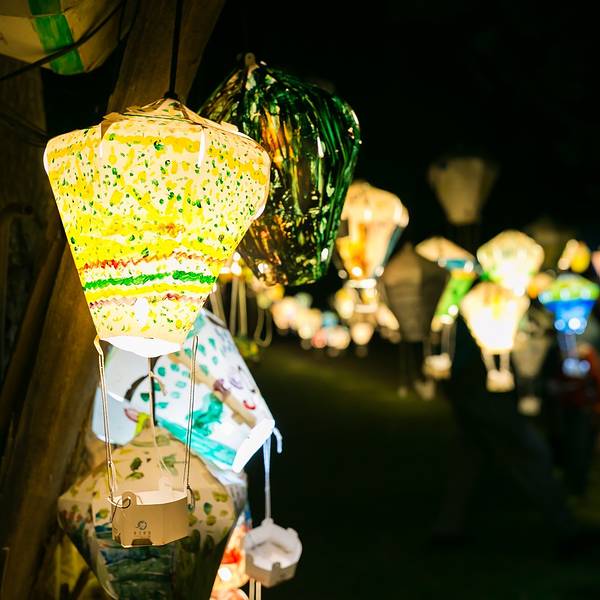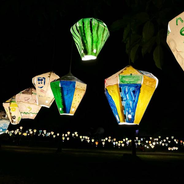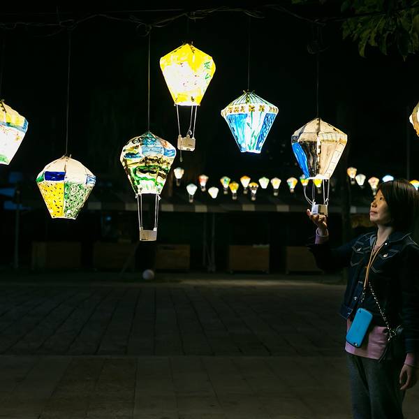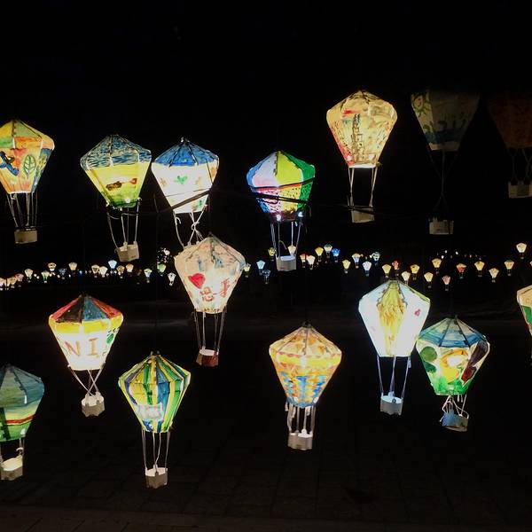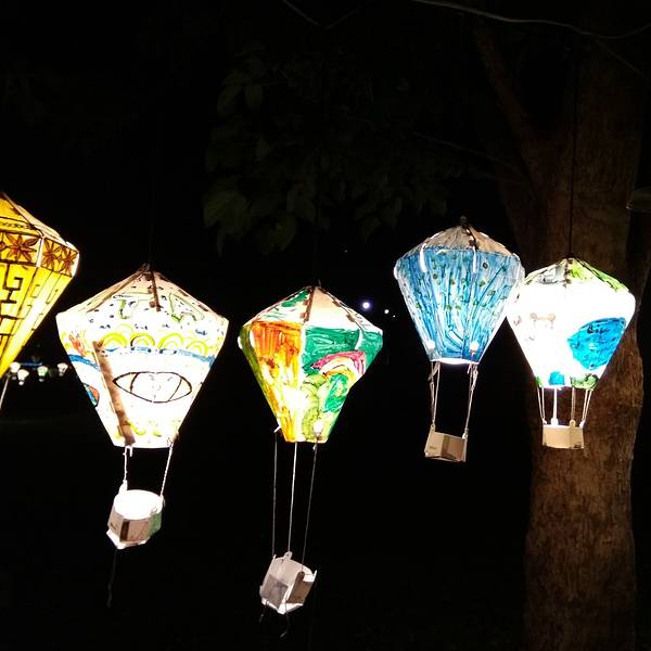 挂满的灯笼,全是国小的学生创作的,晚上灯开起的时候真的很美很美。 展开